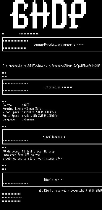 | FiLENAME: | Die.andere.Seite.S01E02.Braut.in.Schwarz.GERMAN.720p.WEB.x264-GHDP.mkv |