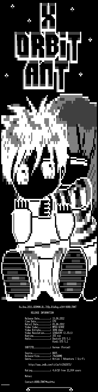 | FiLENAME: | Ra.One.2011.GERMAN.DL.720p.BluRay.x264-XORBiTANT.mkv |