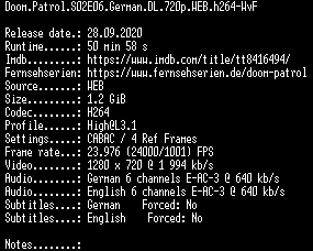 | FiLENAME: | Doom.Patrol.S02E06.German.DL.720p.WEB.h264-WvF.mkv |