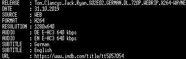 | FiLENAME: | Tom.Clancys.Jack.Ryan.S02E02.GERMAN.DL.720P.WEBRIP.X264-WAYNE.mkv |