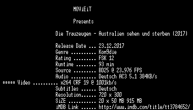 | FiLENAME: | Die.Trauzeugen.Australien.sehen.und.sterben.2017.German.BDRiP.x264-MOViEiT.mkv |
