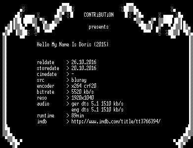 | FiLENAME: | Hello.My.Name.Is.Doris.2015.German.DL.1080p.BluRay.x264-CONTRiBUTiON.mkv |