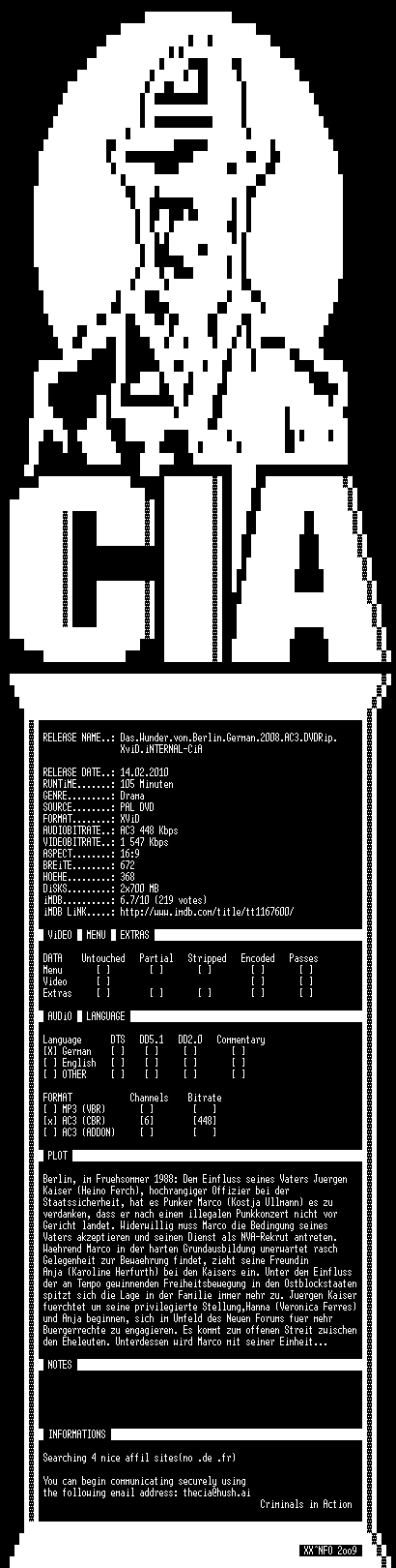 | FiLENAME: | Das.Wunder.von.Berlin.German.2008.AC3.DVDRip.XviD.iNTERNAL-CiA.CD1.avi |