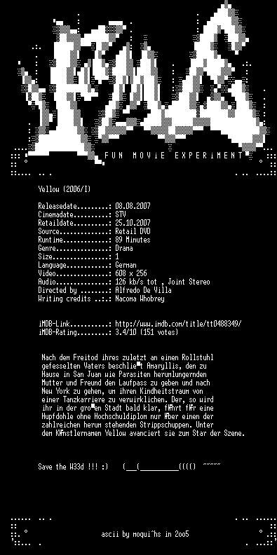 | FiLENAME: | Yellow.German.2006.DVDRiP.XviD-FmE.avi |