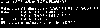 | FiLENAME: | Salvation.S02E11.GERMAN.DL.720p.WEB.x264-OCA.mkv |