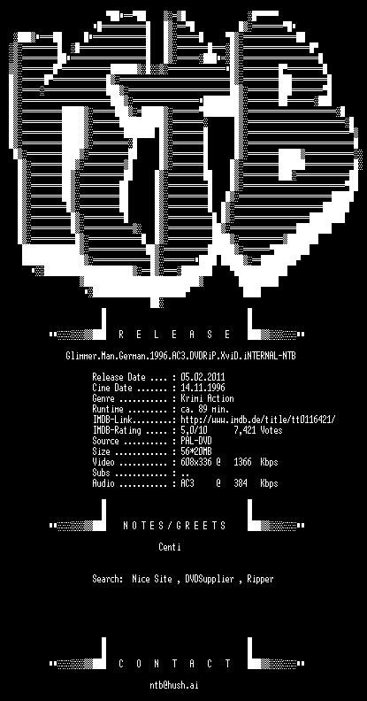 | FiLENAME: | Glimmer.Man.German.1996.AC3.DVDRiP.XviD.iNTERNAL-NTB.avi |