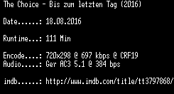 | FiLENAME: | The.Choice.Bis.zum.letzten.Tag.German.2016.BDRiP.x264-CiNEViSiON.mkv |