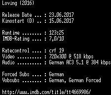 | FiLENAME: | Loving.German.2016.AC3.BDRip.x264-COiNCiDENCE.mkv |