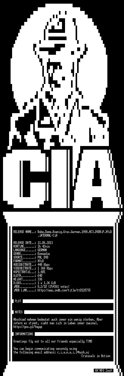 | FiLENAME: | Bube.Dame.Koenig.Gras.German.1998.AC3.DVDRiP.XViD.iNTERNAL-CiA.avi |
