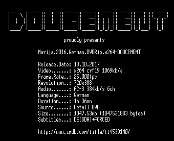 | FiLENAME: | Marija.2016.German.DVDRip.x264-DOUCEMENT.mkv |
