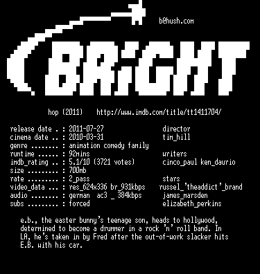 | FiLENAME: | Hop.German.DVDRip.XviD-BRiGHT.avi |