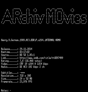 | FiLENAME: | Henry.V.German.1989.AC3.BDRiP.x264.iNTERNAL-ARMO.mkv |