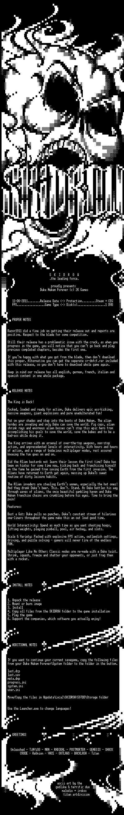 | FiLENAME: | Duke.Nukem.Forever.PROPER-SKIDROW.iso |
