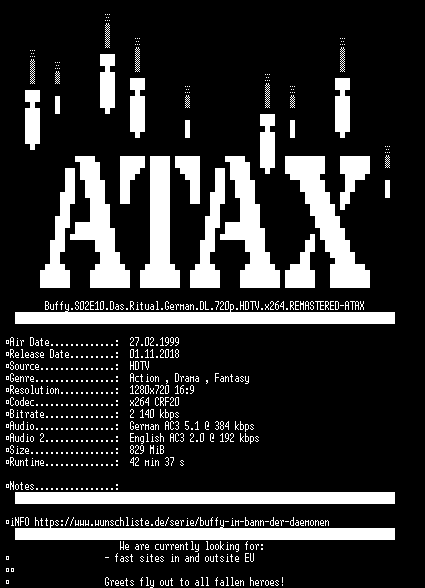 | FiLENAME: | Buffy.S02E10.Das.Ritual.German.DL.720p.HDTV.x264.REMASTERED-ATAX.mkv |