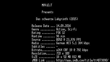 | FiLENAME: | Das.schwarze.Labyrinth.German.2015.AC3.BDRip.x264-MOViEiT.mkv |