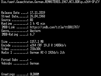 | FiLENAME: | Die.fuenf.Geaechteten.German.REMASTERED.1967.AC3.BDRip.x264-SPiCY.mkv |