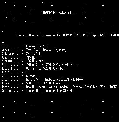 | FiLENAME: | Keepers.Die.Leuchtturmwaerter.GERMAN.2018.AC3.BDRip.x264-UNiVERSUM.mkv |