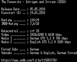 | FiLENAME: | The.Favourite.Intrigen.und.Irrsinn.2018.German.DTS.DL.1080p.BluRay.x264-COiNCiDENCE.mkv |