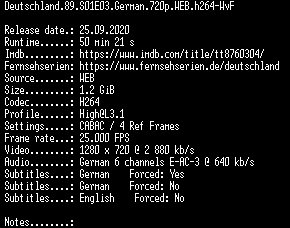| FiLENAME: | Deutschland.89.S01E03.German.720p.WEB.h264-WvF.mkv |