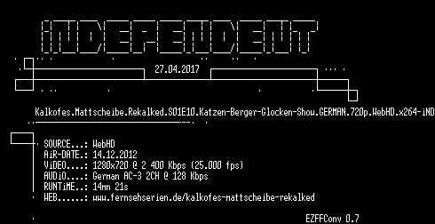 | FiLENAME: | Kalkofes.Mattscheibe.Rekalked.S01E10.Katzen-Berger-Glocken-Show.GERMAN.720p.WebHD.x264-iND.mkv |