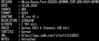| FiLENAME: | White.House.Farm.S01E03.GERMAN.720P.WEB.H264-WAYNE.mkv |