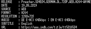 | FiLENAME: | Preacher.S04E04.GERMAN.DL.720P.WEB.H264-WAYNE.mkv |