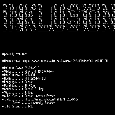 | FiLENAME: | Housesitter.Luegen.haben.schoene.Beine.German.1992.BDRiP.x264-iNKLUSiON.mkv |