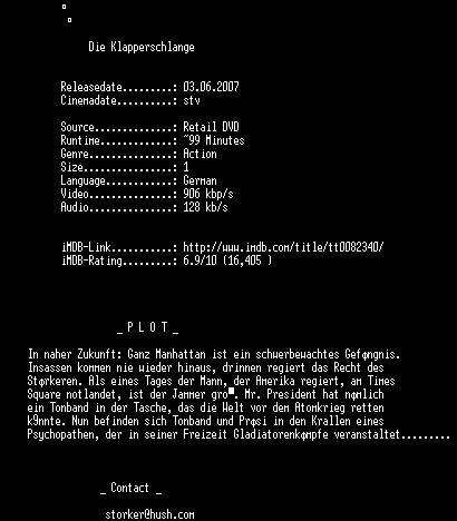 | FiLENAME: | Die.Klapperschlange.German.1981.DVDRIP.XviD.iNTERNAL-StOrKeR.avi |