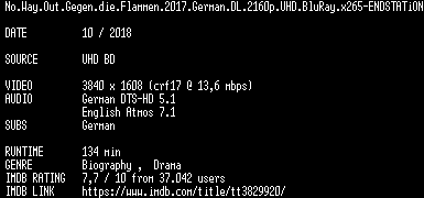 | FiLENAME: | No.Way.Out.Gegen.die.Flammen.2017.German.DL.2160p.UHD.BluRay.x265-ENDSTATiON.mkv |