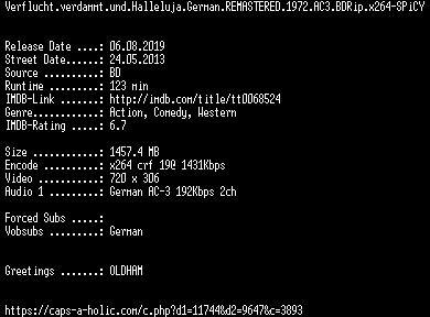 | FiLENAME: | Verflucht.verdammt.und.Halleluja.German.REMASTERED.1972.AC3.BDRip.x264-SPiCY.mkv |