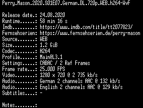 | FiLENAME: | Perry.Mason.2020.S01E07.German.DL.720p.WEB.h264-WvF.mkv |
