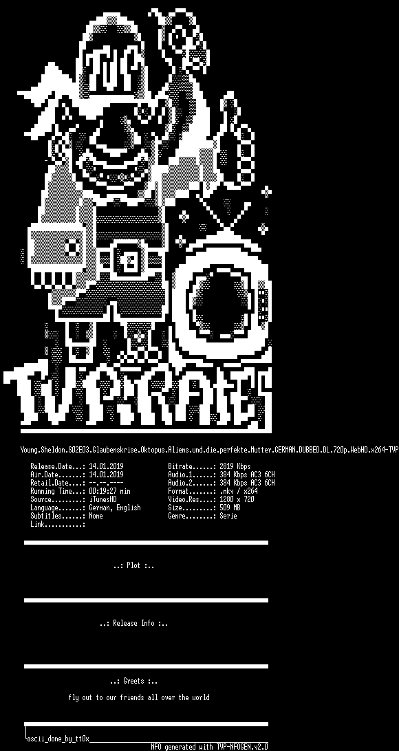 | FiLENAME: | Young.Sheldon.S02E03.Glaubenskrise.Oktopus.Aliens.und.die.perfekte.Mutter.GERMAN.DUBBED.DL.720p.WebHD.x264-TVP.mkv |