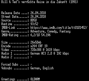 | FiLENAME: | Bill.und.Teds.verrueckte.Reise.in.die.Zukunft.German.REMASTERED.1991.AC3.BDRip.x264-SPiCY.mkv |