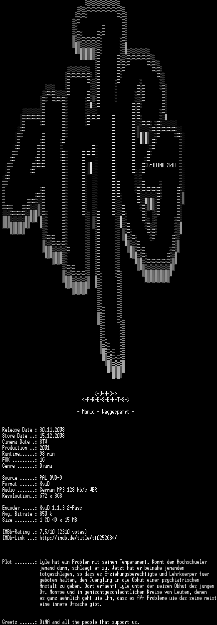 | FiLENAME: | Manic - Weggesperrt (2001) [GER WS DVD].avi |
