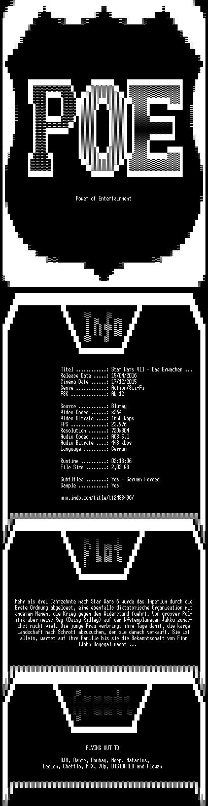 | FiLENAME: | Star.Wars.Episode.VII.Das.Erwachen.der.Macht.2015.BDRip.AC3.German.x264-POE.mkv |