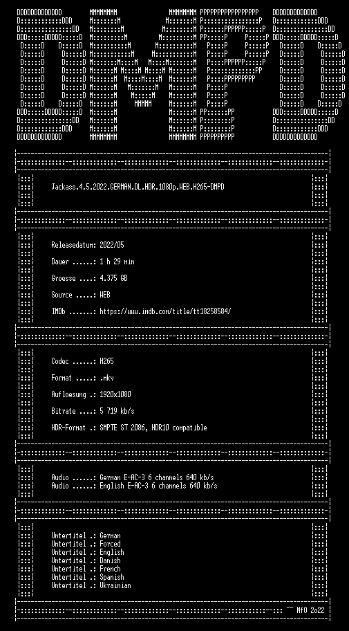 | FiLENAME: | Jackass.4.5.2022.GERMAN.DL.HDR.1080p.WEB.H265-DMPD.mkv |