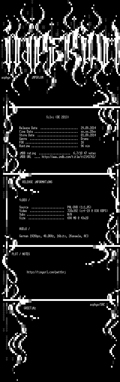 | FiLENAME: | Silvi.German.2013.DVDRip.x264-iMPERiUM.mkv |