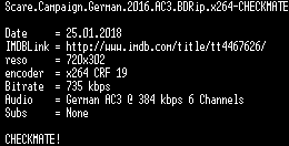 | FiLENAME: | Scare.Campaign.German.2016.AC3.BDRip.x264-CHECKMATE.mkv |