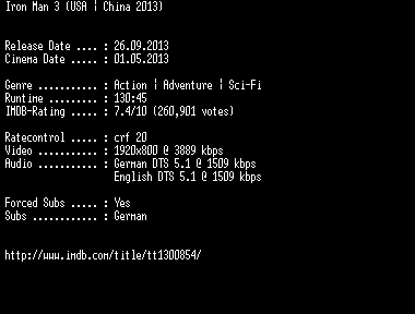| FiLENAME: | Iron.Man.3.German.DL.1080p.BluRay.x264-EXQUiSiTE.mkv |