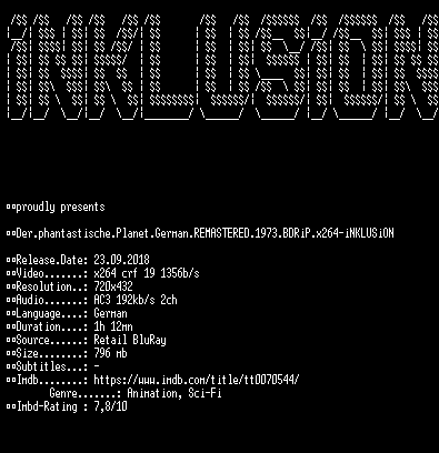 | FiLENAME: | Der.phantastische.Planet.German.REMASTERED.1973.BDRiP.x264-iNKLUSiON.mkv |