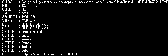 | FiLENAME: | Das.gruselige.Abenteuer.des.Captain.Underpants.Hack.O.Ween.2019.GERMAN.DL.1080P.WEB.X264-WAYNE.mkv |