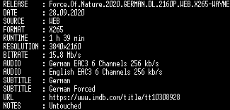 | FiLENAME: | Force.Of.Nature.2020.GERMAN.DL.2160P.WEB.X265-WAYNE.mkv |