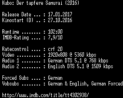 | FiLENAME: | Kubo.Der.tapfere.Samurai.2016.German.DTS.DL.1080p.BluRay.x264-COiNCiDENCE.mkv |