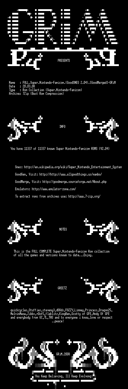 | FiLENAME: | Roms.GoodSNES.Super.Nintendo.Famicom.V2.04.Complete.GoodMerged.Roms-GRiM.rar |