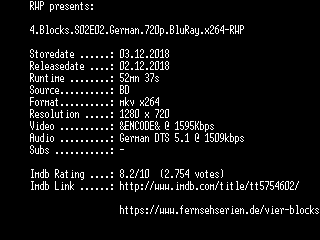 | FiLENAME: | 4.Blocks.S02E02.German.720p.BluRay.x264-RWP.mkv |
