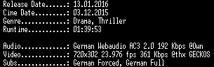 | FiLENAME: | The.Perfect.Guy.2015.German.AC3.Dubbed.BDRiP.x264-MULTiPLEX.mkv |