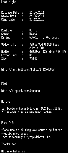 | FiLENAME: | Last.Night.German.DVDRip.XviD-DiSTRiCT.avi |