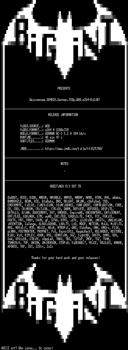 | FiLENAME: | Weissensee.S04E03.German.720p.WEB.x264-BiGiNT.mkv |