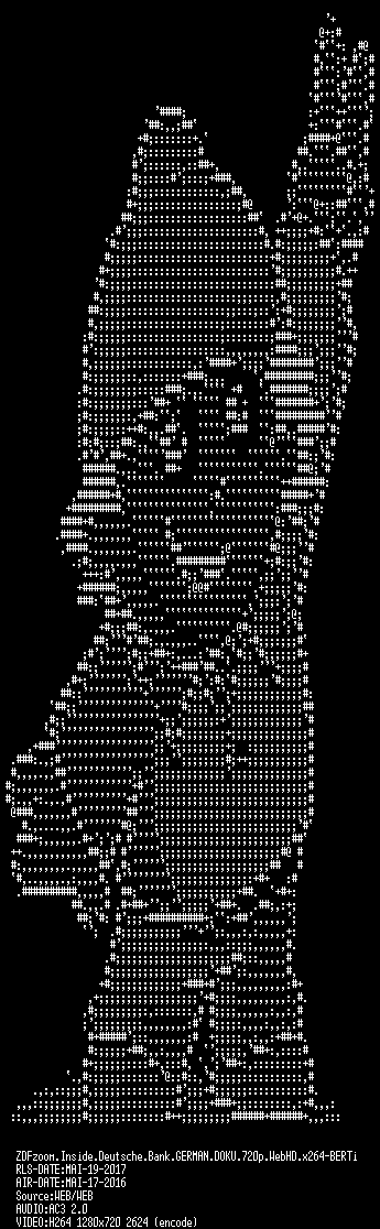 | FiLENAME: | ZDFzoom.Inside.Deutsche.Bank.GERMAN.DOKU.720p.WebHD.x264-BERTi.mkv |