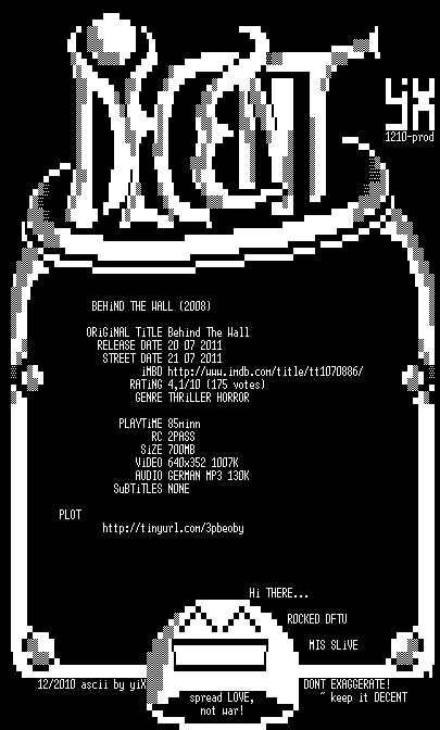 | FiLENAME: | Behind.The.Wall.German.2008.DVDRip.XviD-DECENT.avi |